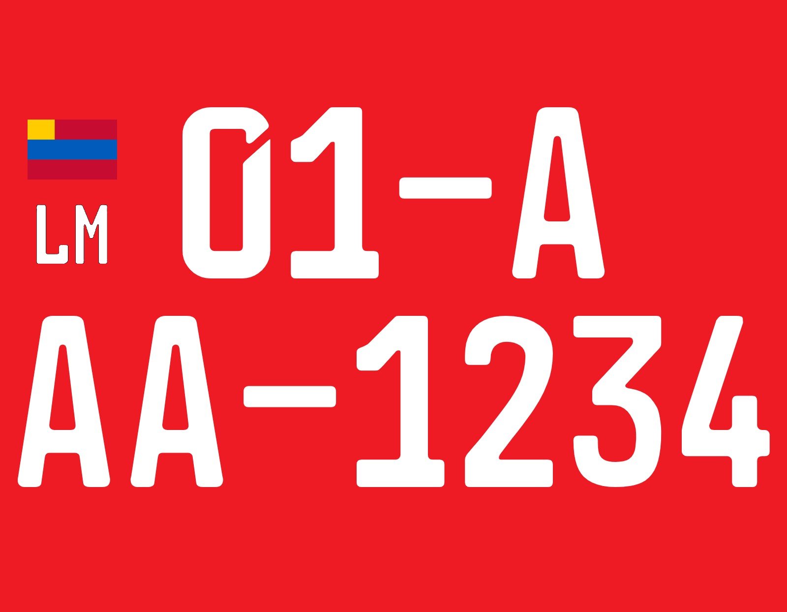 - Flag and Country Code: The license plate must display the official flag of Luminska above the country code "LM" on the left side in a red or blue strip.